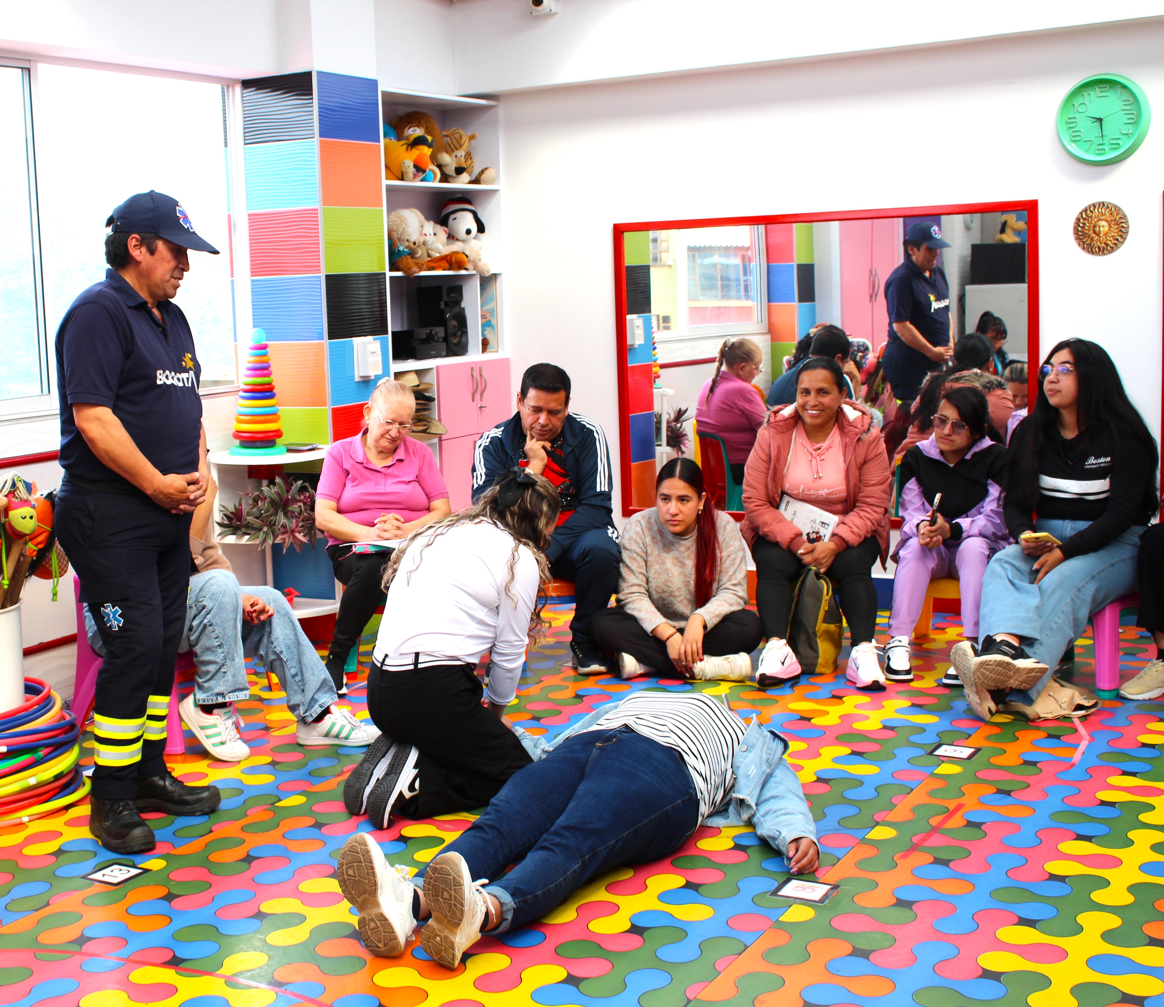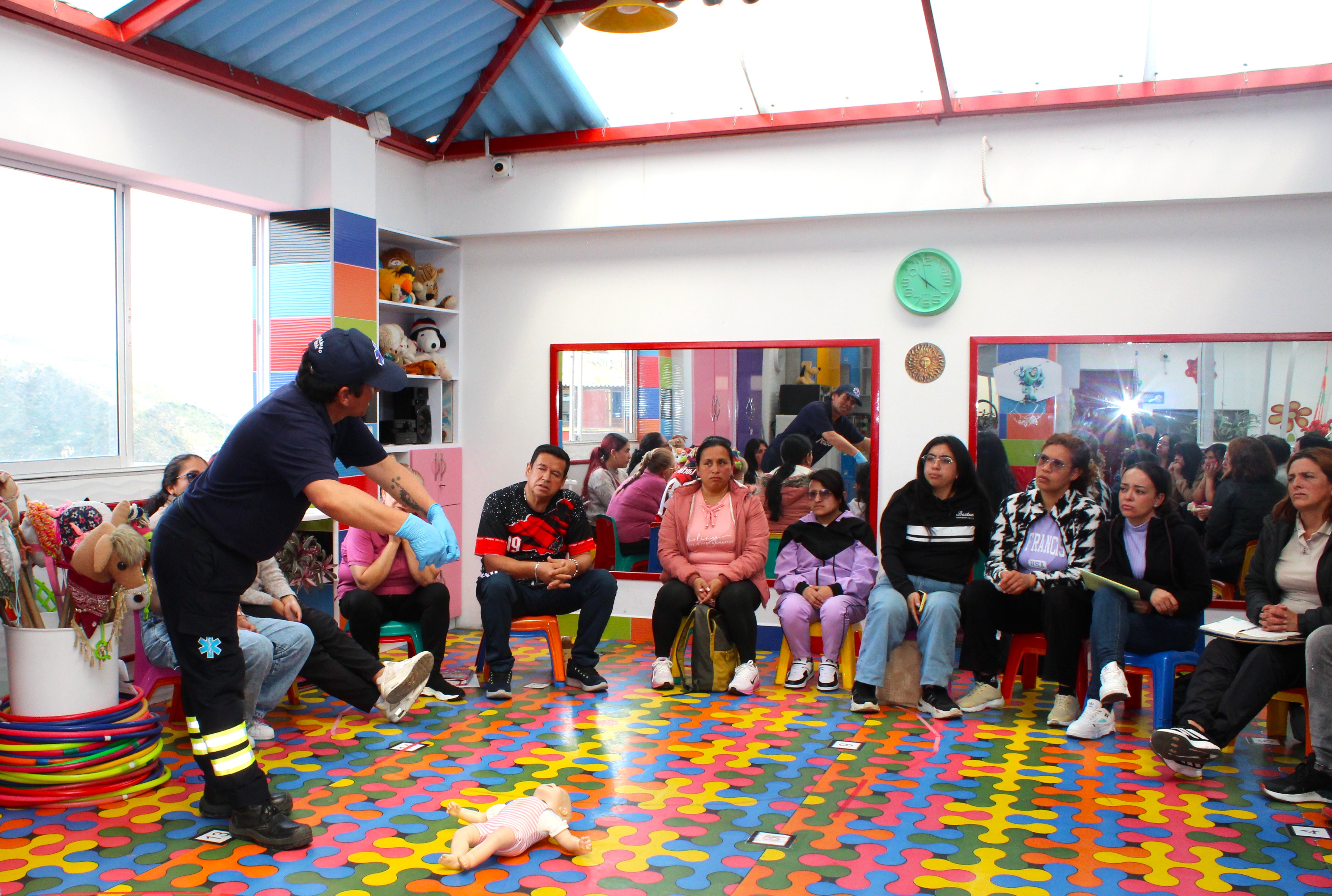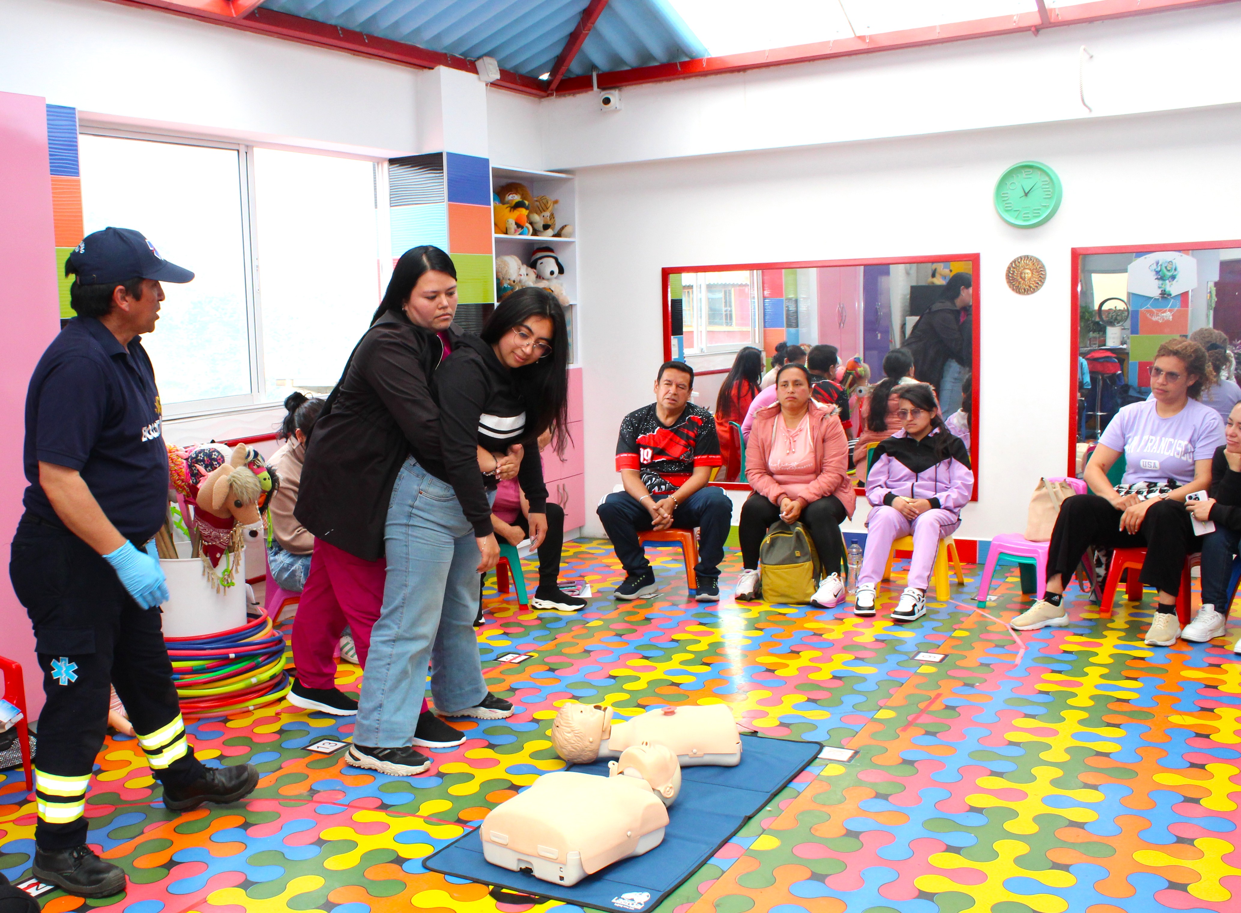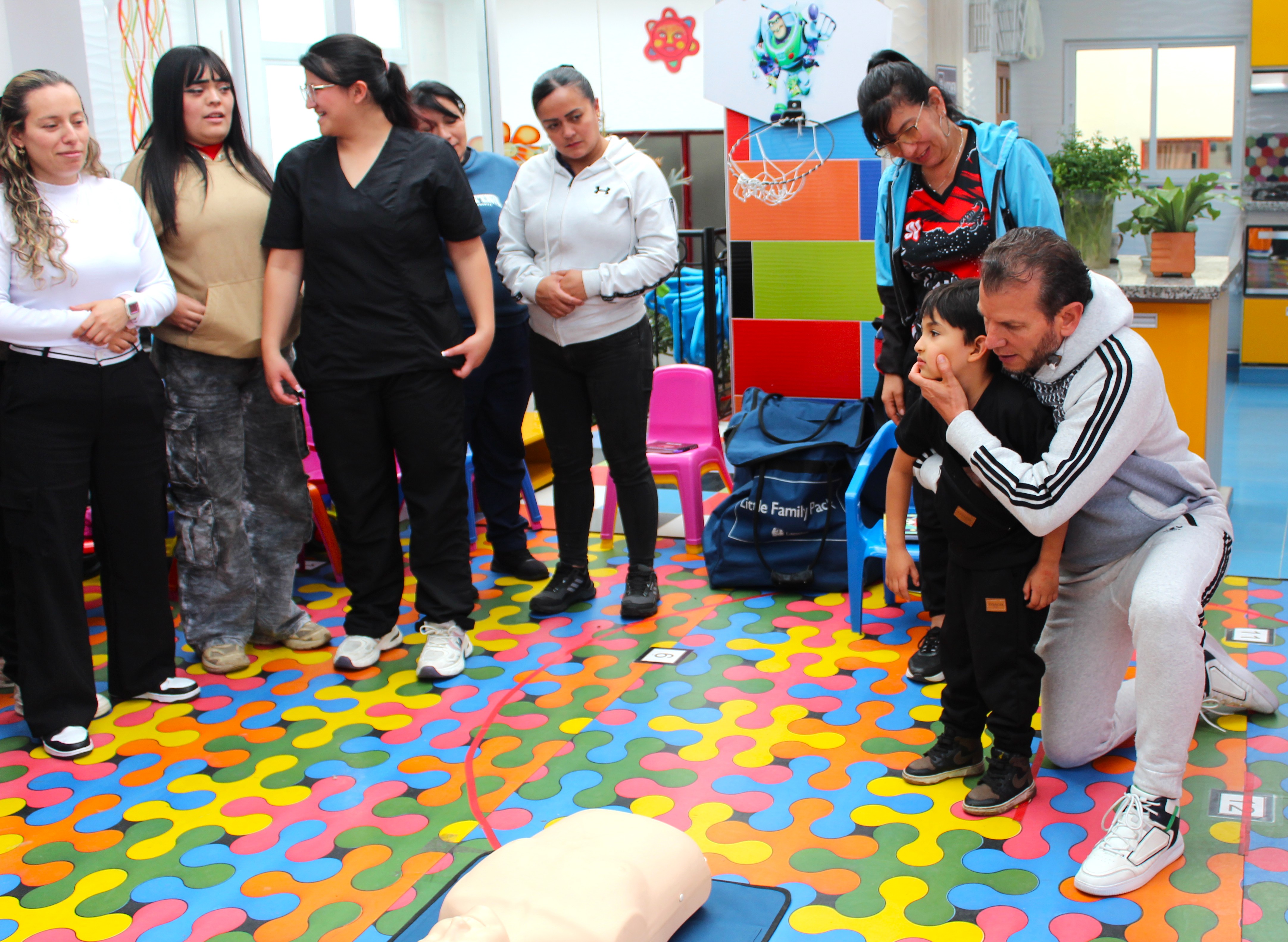 El 28 de enero realizamos la primera capacitación del año en primeros auxilios infantiles con un enfoque práctico, donde el objetivo principal fue que tod@s conocieran los procedimientos básicos para poder reaccionar de manera rápida y eficaz en caso de presentarse algún accidente o emergencia, y establecer criterios generales de atención frente a una situación de emergencia, mientras llega la atención médica o el herido es trasladado a un centro médico. En el curso práctico se incorporaron conocimientos de paro cardio-respiratorio, Reanimación Cardio Pulmonar RCP, cadena de supervivencia, masaje cardíaco externo, maniobra de subluxación mandibular, maniobra de Heimlich, control de hemorragias, estabilización de lesiones traumáticas, entre otros.